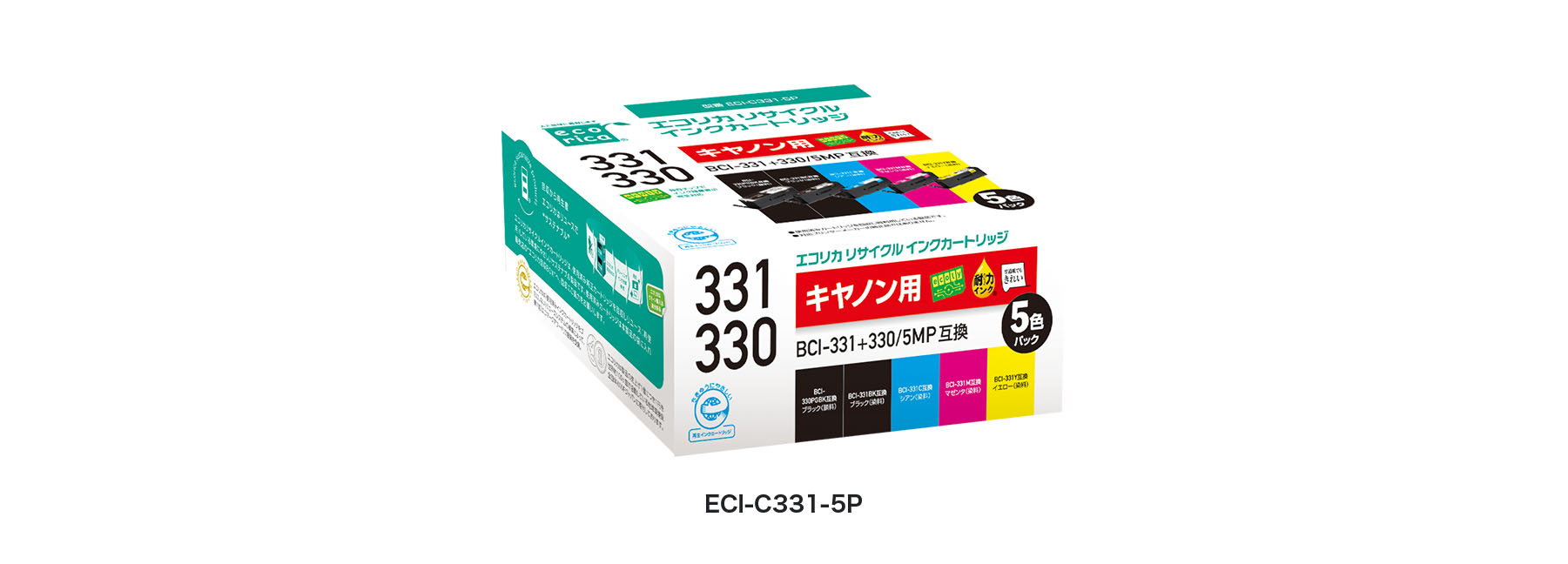 株式会社エコリカ(本社:大阪市中央区、代表取締役社長:宗廣宗三)では、2026年2月20日にキヤノンプリンター用BCI-330/331互換リサイクルインクカートリッジ(顔料ブラック、染料ブラック、染料シアン、染料マゼンタ、染料イエロー)の5色BOX品を発売いたします。